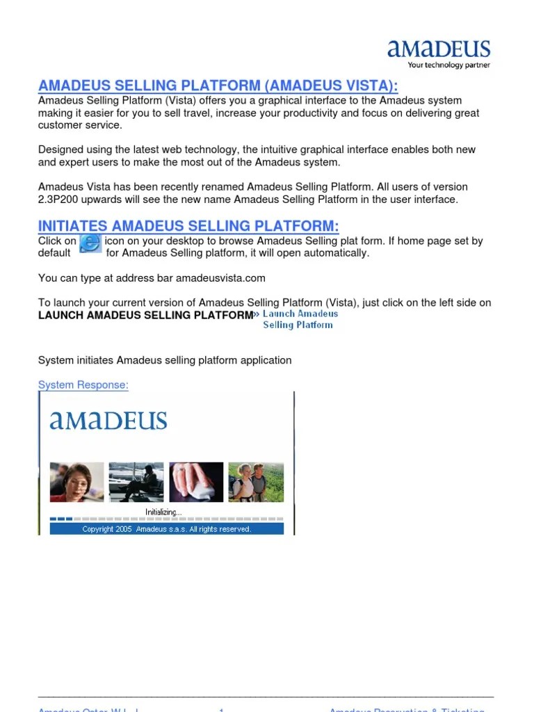 9advantage gprot05/jan14/ver7 change to ticketless access airline display acw1/b1(. Using the jcd command with added section code you can display all signs . Request a credit card approval code. Add special and other services to a pnr. If your user was created associated to the sign that you used to access amadeus selling platform (classic), it does not require activation.